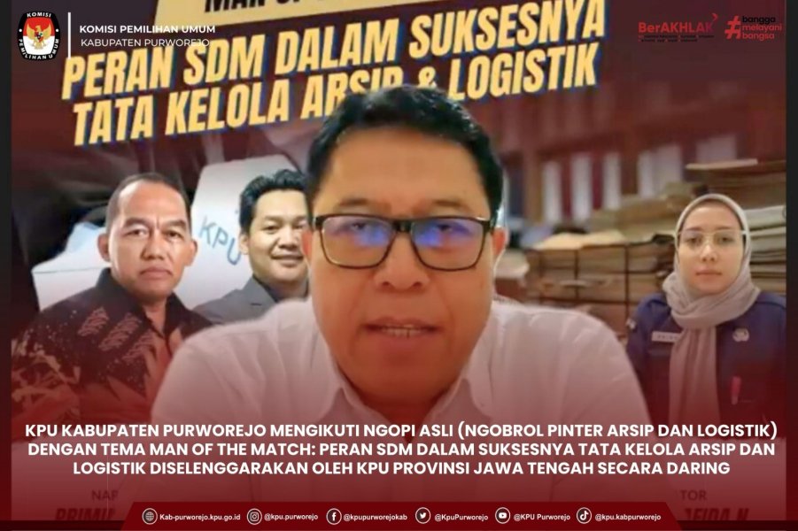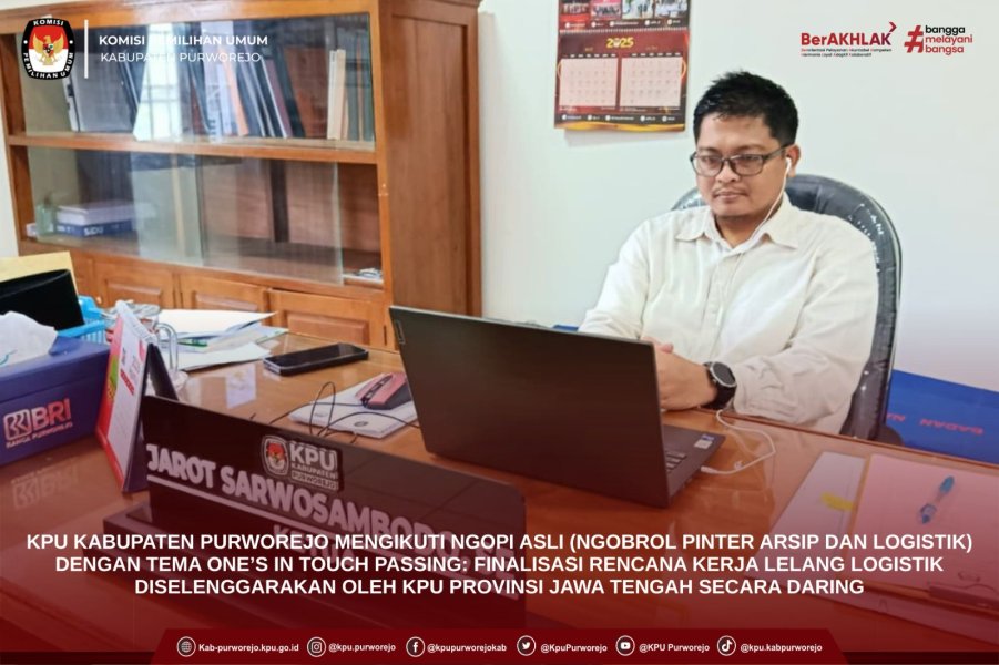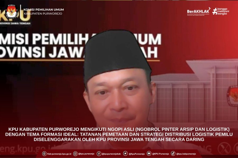 Komisioner dan Sekretariat KPU Kabupaten Purworejo kembali mengikuti “Ngopi Asli“ atau Ngobrol Pinter Arsip dan Logistik bertema Clean Sheet : Transparansi Pengelolaan dan Pengarsipan Logistik yang diselenggarakan KPU Provinsi Jawa Tengah pada Selasa 7 Oktober 2025 secara daring. “Ngopi Asli” edisi kali ini menghadirkan 3 narasumber yaitu Ketua KPU Kota Surakarta Yustinus Arya, Ketua KPU Kabupaten Temanggung Henry Sofyan Rois, dan Ketua KPU Kabupaten Demak Siti Ulfaati. Ketua KPU Provinsi Jawa Tengah Handi Tri Ujiono membuka kegiatan dengan menyampaikan pentingnya transparansi dalam segala aspek untuk mengelola logistik dari perencanaan hingga akhirnya logistik diarsipkan. Sementara itu dalam sambutan Ketua Divisi Perancangan dan Logistik KPU Provinsi Jawa Tengah Basmar Perianto Amron berpesan “Kegiatan pengelolaan logistik harus bisa dilihat secara jelas dari awal proses perencanaan dan pertanggungjawabannya harus dapat dilihat dan disajikan dengan sebaik-baiknya,” tuturnya. Kegiatan dimulai dengan penyampaian materi oleh narasumber pertama dari Ketua KPU Kota Surakarta mengenai peran E-Katalog dalam Pengadaan Logistik yang salah satu tujuannya untuk transparansi serta efisiensi anggaran. Dalam pemaparan materi kedua dari narasumber Ketua KPU Kabupaten Temanggung Henry Sofyan Rois mengatakan “KPU Kabupaten Temanggung melakukan pengelolaan logistik secara terbuka dan transparan dengan tujuan untuk menjaga kepercayaan publik terhadap penyelenggara dan penyelenggaraan Pemilu serta untuk mencegah penyimpangan dalam pengadaan dan pengelolaan logistik,” katanya. Sementara itu narasumber ketiga dari Ketua KPU Kabupaten Demak Siti Ulfaati berbagi pengalaman dalam pengelolaan logistik di Kabupaten Demak yang terkendala akibat adanya bencana banjir yang menimpa Sebagian Gudang logistik dan kantor KPU Kabupaten Demak. Beliau juga berbagi pengalaman dalam pengelolaan logistik yang transparan dan pengarsipan logistik pasca Pemilu di Kabupaten Demak. Kegiatan ditutup dengan pembahasan mengenai permasalahan yang terjadi hampir di setiap KPU Kabupaten/Kota se-Jawa Tengah tentang ketepatan penerimaan jumlah surat suara di TPS . Hal ini menjadi bahan evaluasi untuk penyelenggaraan Pemilu selanjutnya mengenai bagaimana cara untuk dapat mengatasi permasalahan tersebut.