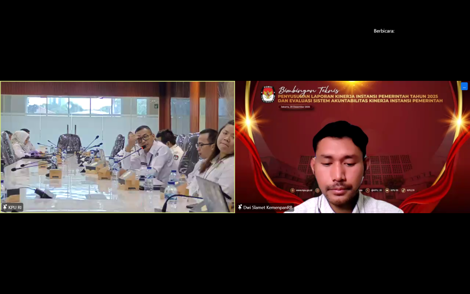 Purworejo – KPU Kabupaten Purworejo mengikuti Bimbingan Teknis Penyusunan Laporan Kinerja Instansi Pemerintah (LKjIP) dan Evaluasi Sistem Akuntabilitas Kinerja Instansi Pemerintah (SAKIP) yang dilaksanakan secara daring pada Senin (29/12/2025).