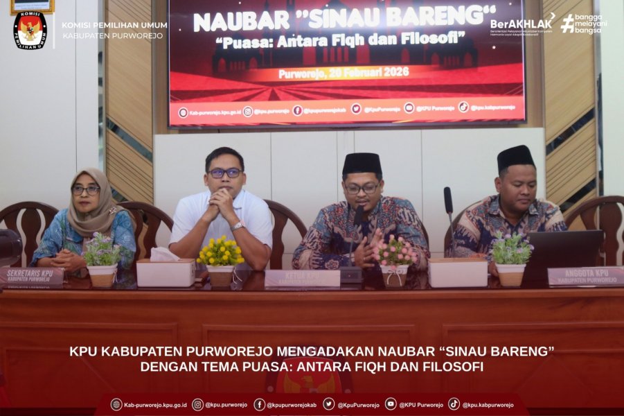 Purworejo - KPU Kabupaten Purworejo menggelar kegiatan Sinau Bareng (Naubar) pada Jumat, 20 Februari 2026, bertempat di aula kantor KPU Kabupaten Purworejo. Kegiatan ini diikuti oleh seluruh pegawai sebagai bagianuntuk menambhan wawasan dan penguatan spiritual dalam menjalankan ibadahan puasa Ramadan.
