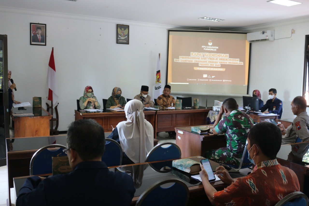 Rapat dihadiri oleh Dinas Disdukcapil Kabupaten Purworejo, Dandim 0706 Purworejo, Kapolres Purworejo, Bawaslu Purworejo, Ketua Prasojo Purworejo, Ketua MKKS SMA Purworejo. Rapat berjalan baik dan lancar serta ditutup oleh ketua KPU Kabupaten Purworejo.