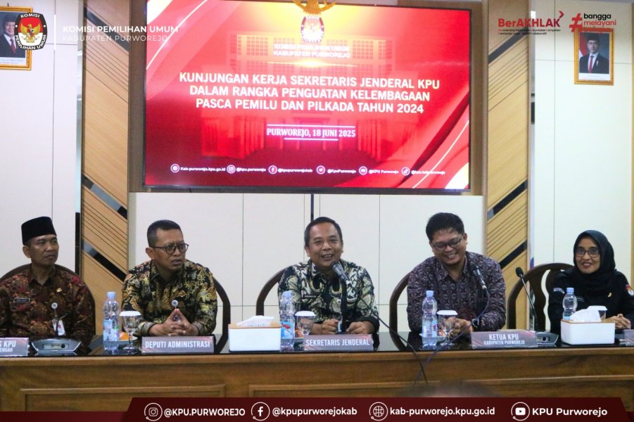 KPU Kabupaten Purworejo melakukan koordinasi dengan Bawaslu terkait Pemutakhiran Data Pemilih Berkelanjutan (PDPB) Tahun 2025, Selasa 10 Juni 2025. Ketua Divisi Perencanaan Data dan Informasi KPU Kabupaten Purworejo, Suwardiyo diterima langsung oleh Komisioner Bawaslu Kabupaten Purworejo, Widya Astuti selaku Koordinator Divisi Pencegahan, Partisipasi Masyarakat dan Hubungan Masyarakat, Rinto Hariyadi, Siti Dangiatus Solikhah dan Dumadi Tri Restyanto beserta dengan Staf di Kantor Bawaslu Kabupaten Purworejo. Dalam koordinasi ini secara khusus membicarakan terkait tentang kegiatan Pemutakhiran Data Pemilih Berkelanjutan sesuai dengan PKPU Nomor 1 tahun 2025. Data yang digunakan sebagai bahan PDPB adalah data yang diterima dari KPU RI pada akhir bulan Mei 2025 yang lalu. “KPU akan menindaklanjuti Data PDPB yang diterima, kemudian akan kami rekap di Tingkat Kabupaten secara periodik 3 (tiga) bulan sekali”, terang Suwardiyo. Dalam kesempatan tersebut, bawaslu mengapresiasi dan mendukung kegiatan PDBP ini dan harapannya data pemilih Kabupaten Purworejo dapat terus update dan mutakhir. Koordinasi lanjutan diharapkan dapat dilakukan agar masukan-masukan yang ada dapat langsung tersampaikan, sebagai bentuk supporting system Bawaslu terhadap kegiatan PDPB ini. “Kami mengapresiasi kegiatan PDPB ini, harapan saya koordinasi seperti ini dapat terus dilakukan agar kami dapat ikut mencermati dan memberikan masukan”, tandas Widya.