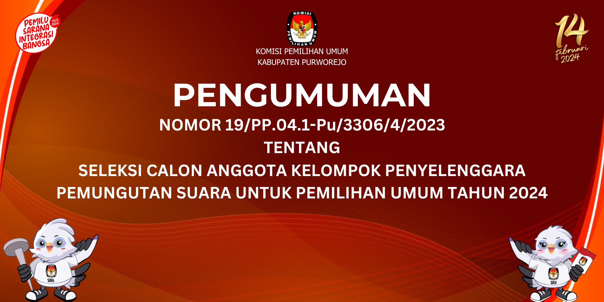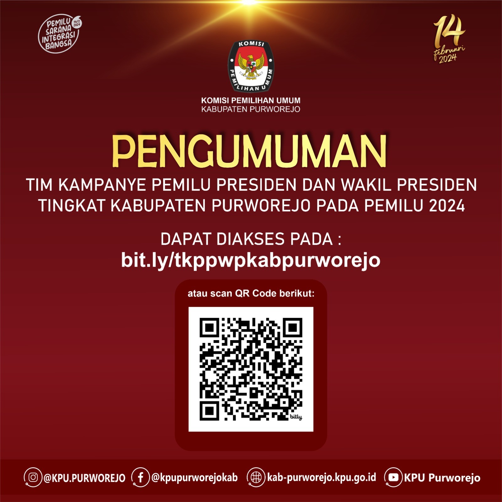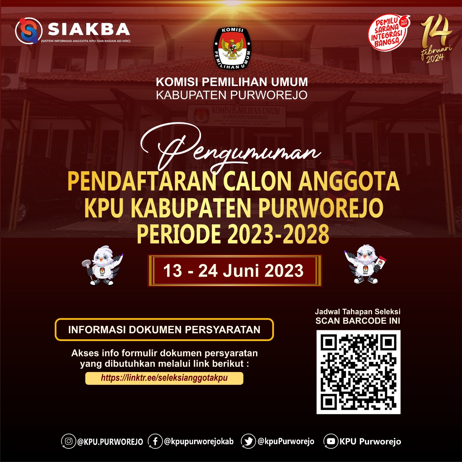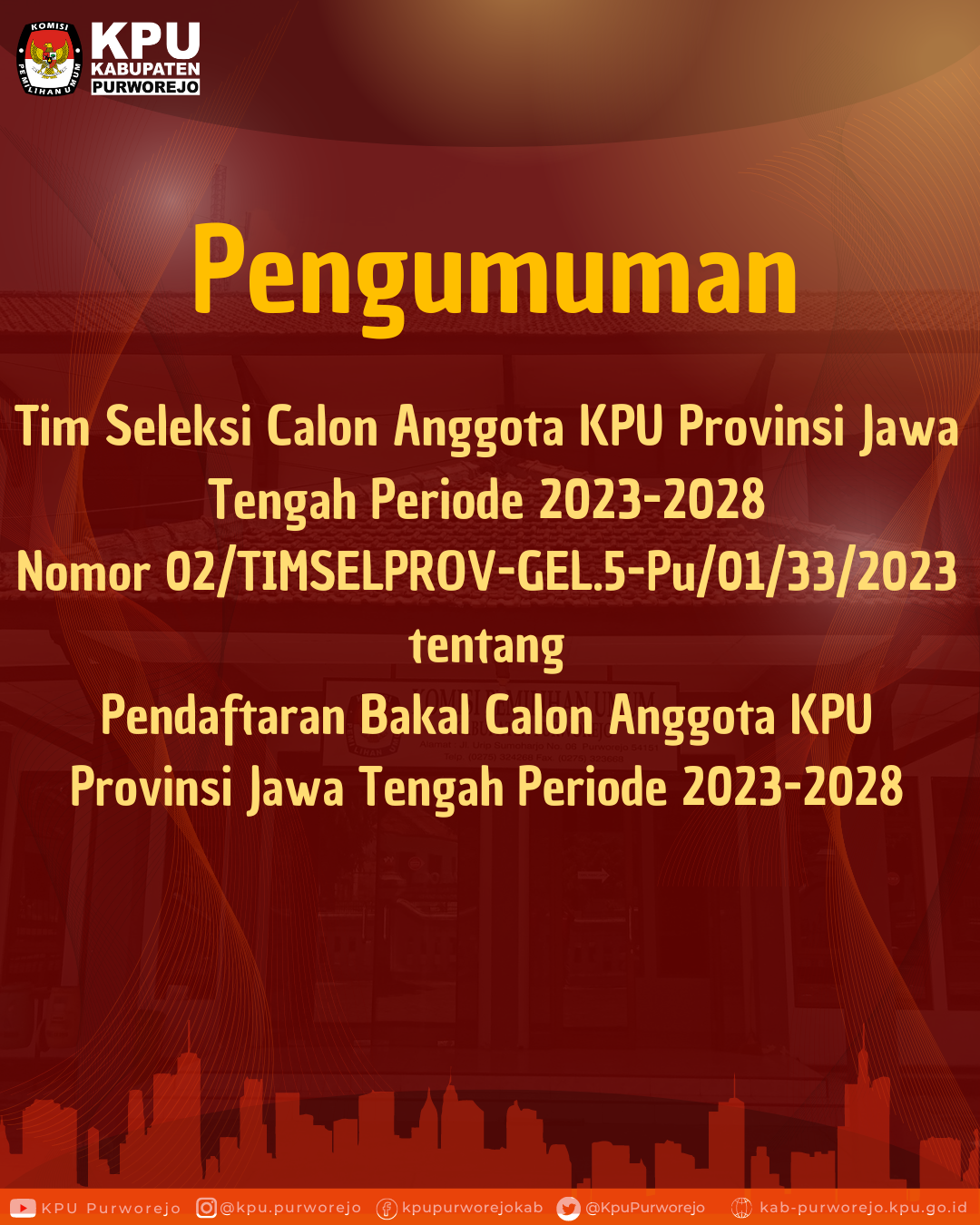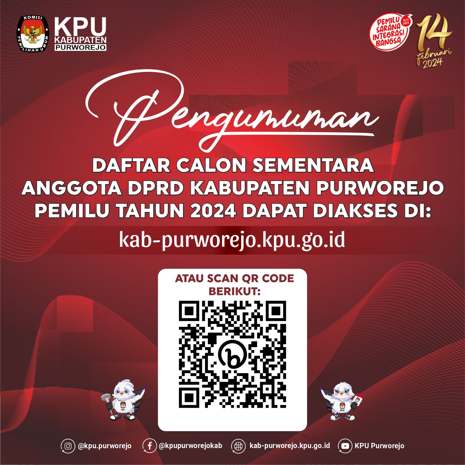 Bahwa untuk melaksanakan ketentuan Pasal 70 Peraturan KPU Nomor 10 Tahun 2023 tentang Pencalonan Anggota Dewan Perwakilan Rakyat, Dewan Perwakilan Rakyat Daerah Provinsi, dan Dewan Perwakilan Rakyat Daerah Kabupaten/Kota, KPU Kabupaten Purworejo mengumumkan Daftar Calon Sementara (DCS) Anggota DPRD Kabupaten Purworejo dan persentase keterwakilan perempuan dalam Daftar Calon Sementara (DCS) sebagaimana terlampir pada tautan berikut ini.
